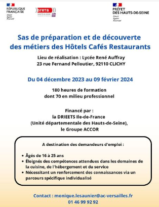 Formation à Clichy métiers Hôtels Cafés Restaurants